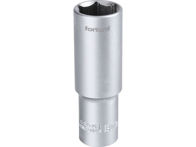 Fortum dugófej, hosszított, 1/2", 19mm, 61CrV5, mattkróm, 77mm hosszú FORTUM