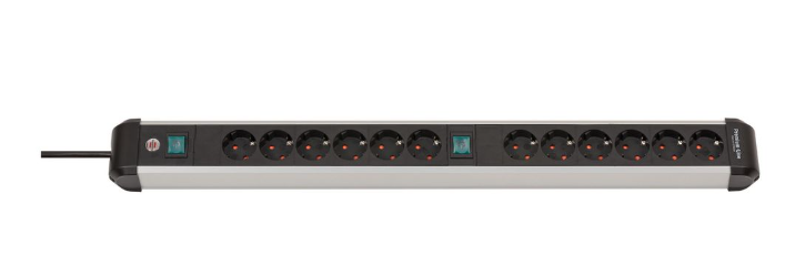 Brennenstuhl Elosztó Premium Alu-Line 12x DE F típusú (CEE 7/3) aljzat - DE F típusú (CEE 7/7) dugó Fekete/világosszürke 3m