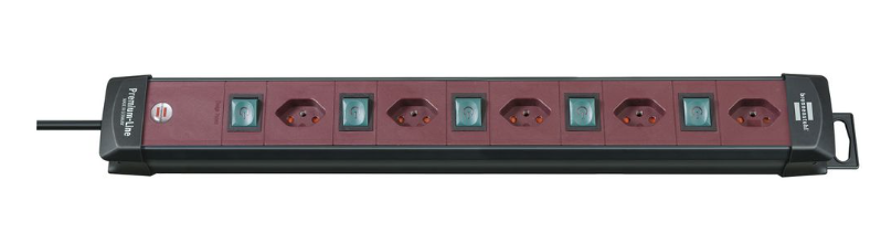 Brennenstuhl Elosztó Premium-Line 5x CH J típusú (T13) aljzat - CH J típusú (T12) dugó Fekete/bordó 3m