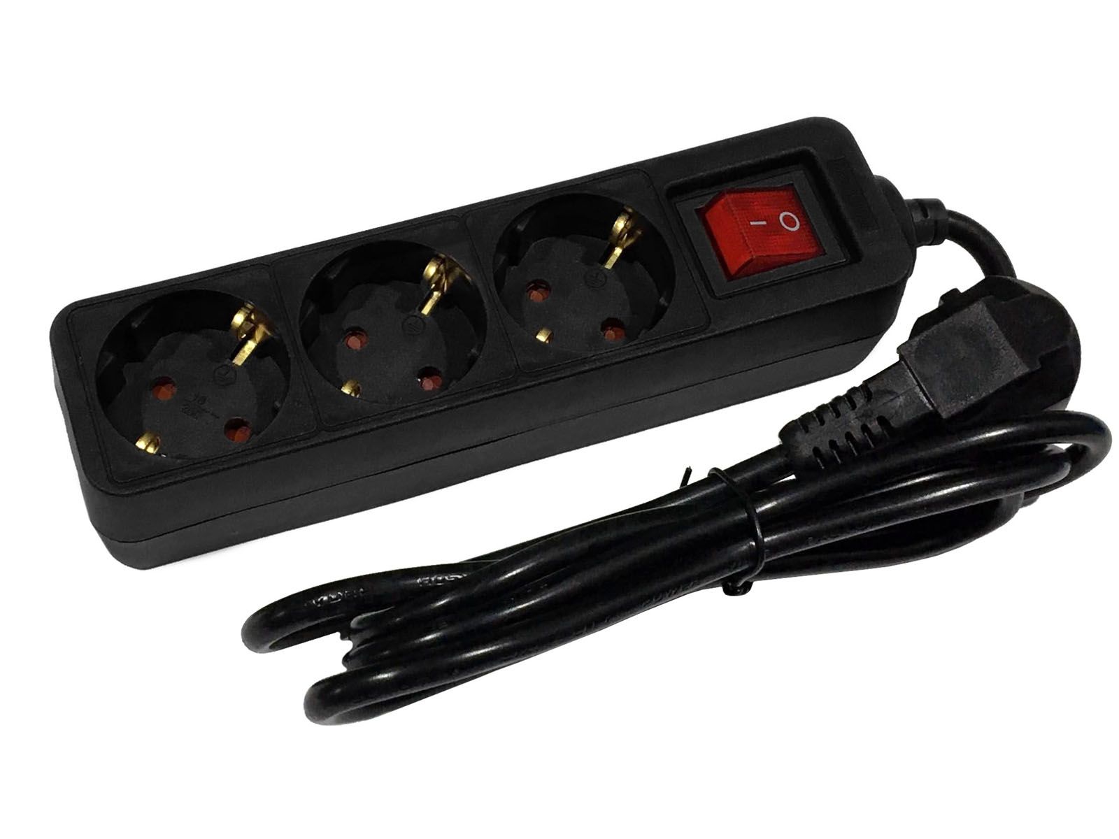 Entac S1 Színes Elosztó 3 Foglalat Kapcsolóval 1,5m Fekete