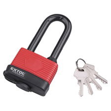 EXTOL Lakat, laminált, vízálló, hosszított kengyel, 4db kulcs; 65mm, kengyelszárátmérő:13/18mm